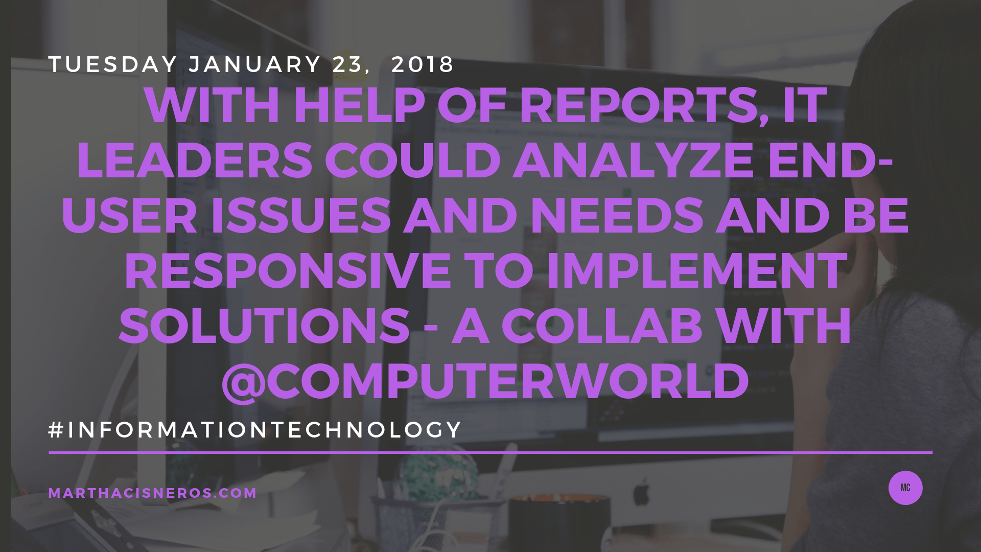 I feel so honored to collaborate with Computer World. Along with 10 other influencers of the Information Technology industry, we provide advice on how IT can improve the relationship with their End Users. My opinion is stated below: